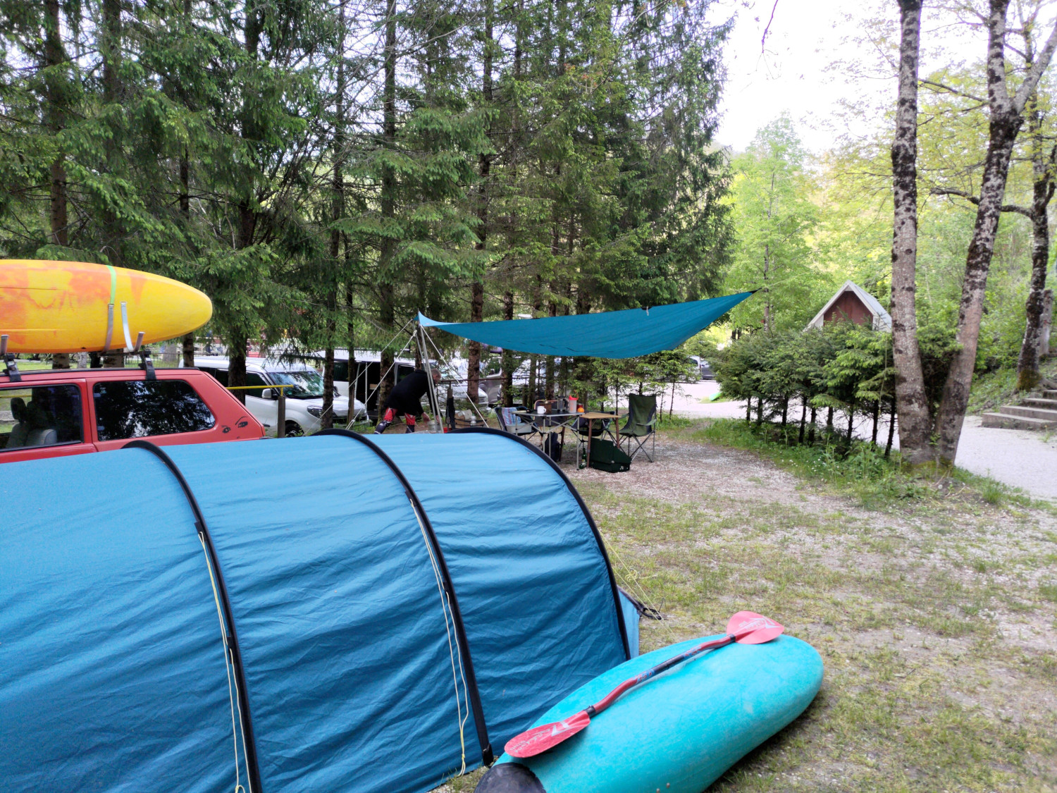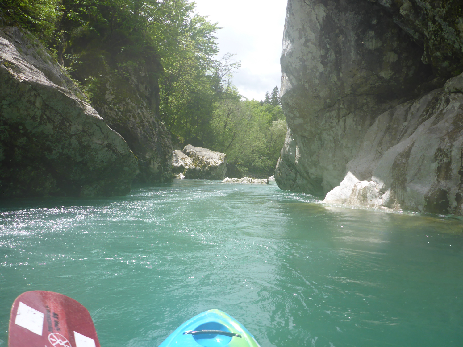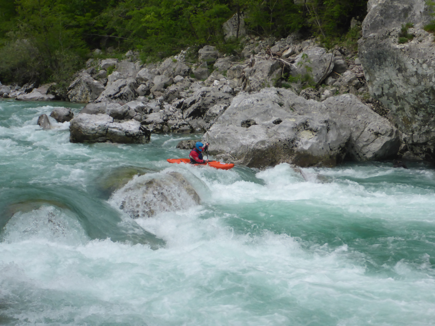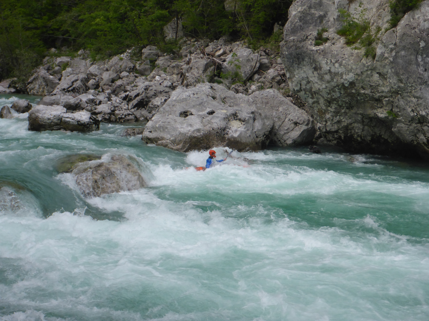 Ca. 40 von uns waren trotz der weiten Anfahrt von bis zu 1400 km dem verführerischen Ruf von Soča und Koritinica nach Bovec gefolgt. Paddlerisch ist jeder auf seine Kosten gekommen. Ob Panoramastrecke im Open Canoe, Friedhofsstrecke im Topo Duo oder große Schlucht im Creeker - die Wasserstände ließen alles zu.